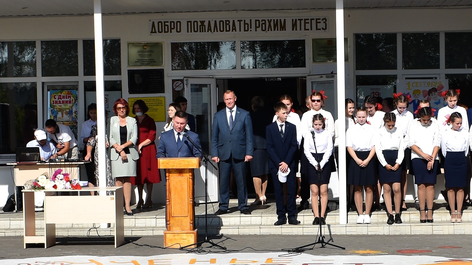 Upon arrival, he took part in a solemn ruler on the occasion of Knowledge Day in the MBOU "Bazarno-Mataksky secondary school" in the village of Bazarny Mataki.