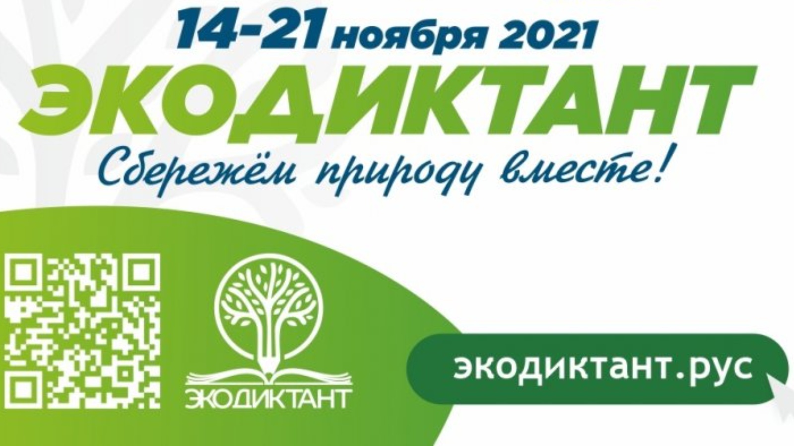 The All-Russian Ecological Dictation will take place from 14 to 21 November 2021. This year, the event will be organized in offline and online formats on the portal: https://экодиктант.рус/.