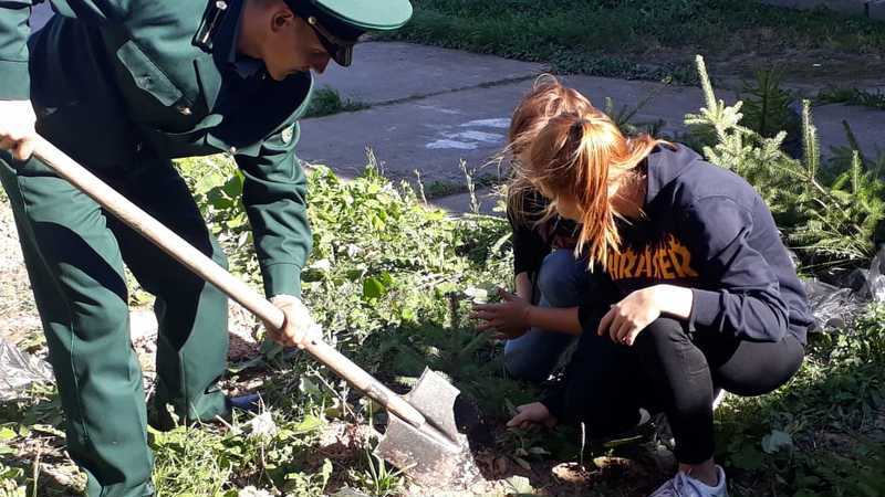 Получив массу полезной информации о лесоустройстве, ребята продолжили применять ее на практике. На территории п. Октябрьский под наставлением мастеров леса Владимира Тихонова и Евгения Чубакова в рамках программы «Озеленим родной поселок» члены школьного лесничества произвели высадку саженцев вокруг средней общеобразовательной школы. Силами молодых лесников посажены 10 саженцев ели европейской, 10 – рябины обыкновенной и столько же спиреи калинолистной.