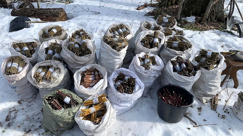 «Черенкование является одним из простых способов вегетативного размножения растений, деревьев и кустарников. По технологии, длина заготовленных черенков должна составлять 15-20 см (не менее 5 почек на черенке). Нижняя часть черенка срезается под углом 45 градусов, затем они связываются в пучки по 20 штук для подсчета количества и удобства при посадке. После черенки закладываются в кучу снега для сохранения их жизнеспособности и предотвращения просыпания от зимней спячки, – рассказал начальник базисного лесного питомника лесхоза Ленар Касимов. – После схода снега черенки высаживаются в школьное отделение питомника».