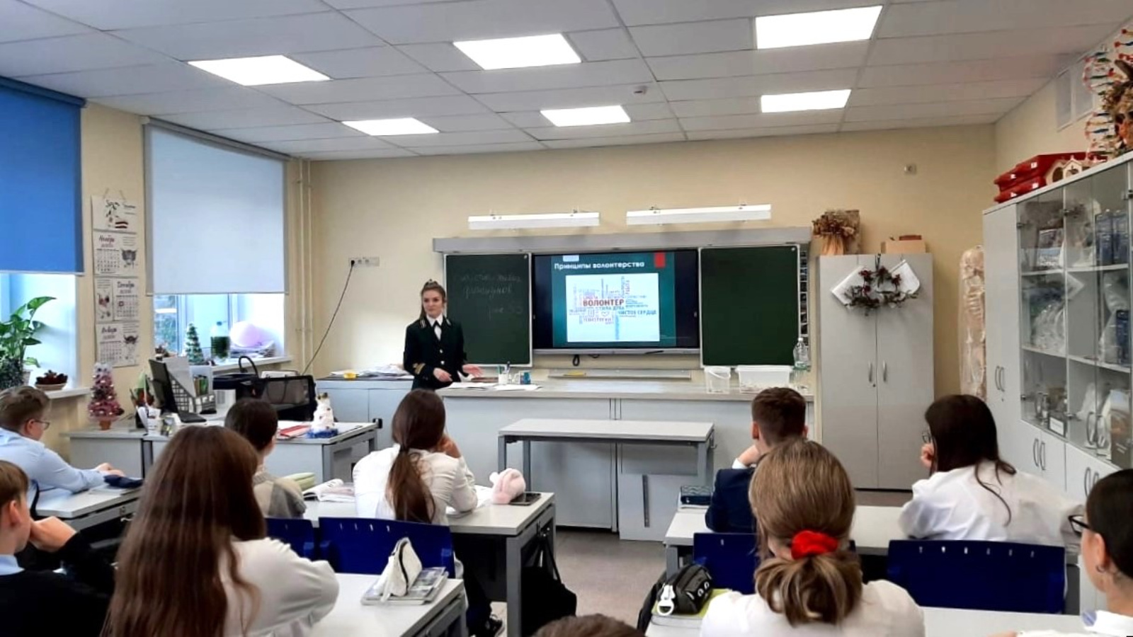 В ходе урока школьники узнали о понятиях «волонтер» и «добровольчество». Оксана Горбатенко рассказала им о видах волонтерской деятельности, вкладе волонтеров в улучшение экологии в Республике Татарстан, а также проводимых акциях.