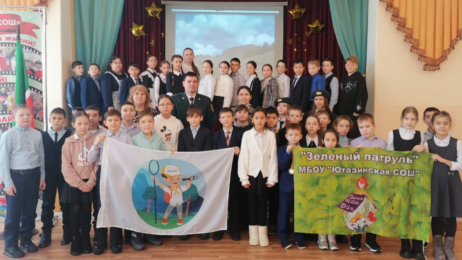 В МБОУ «Ютазинская СОШ» Ютазинского муниципального района прошла встреча начальника ГПЗ «Чатыр-Тау» Ильнура Сарварова с активистами юннатского отряда и школьного лесничества «Зеленый патруль». Во встрече приняли участие специалист заказника Гульнара Хакимова и главный бухгалтер ГБУ РТ «Бугульминский лесхоз» Лилия Садыкова.