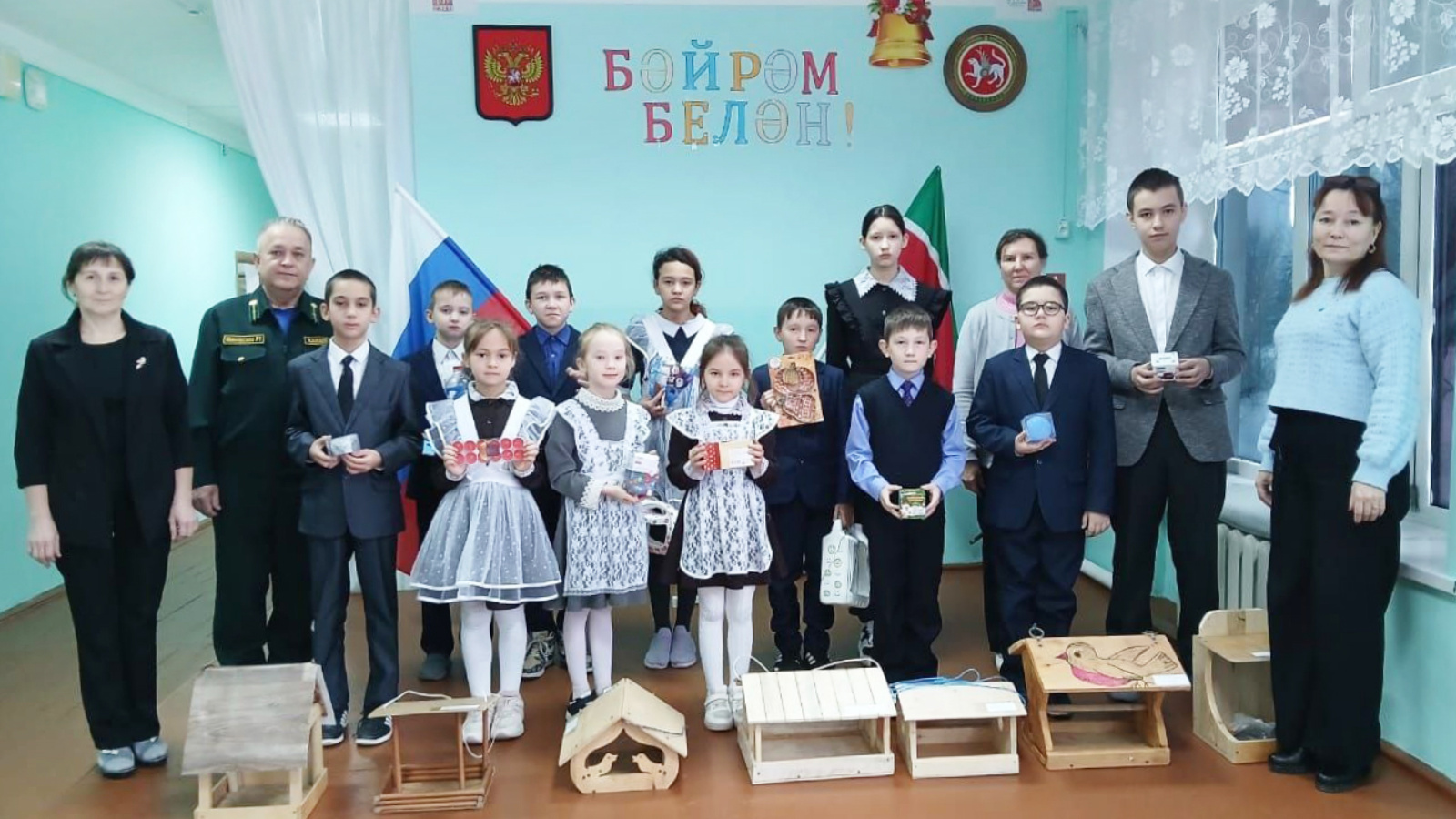 По словам организаторов, изготовленные кормушки были развешены на территории школы.