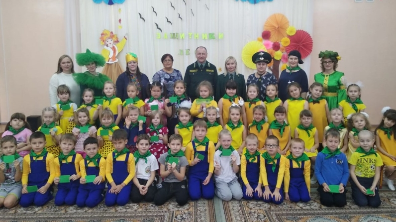 Балалар бакчасында тәрбияләнүчеләрне мәктәпкәчә урманчылыкка керүләре белән "Тәтеш урманчылыгы" ДКУ җитәкче-урманчысы урынбасары Юрий Малькин һәм баш хисапчы Әлфия Хәлитова котлады. Алар балаларга таныклыклар һәм "Яшь урман сакчылары" берләшмәсе символы – яшел галстуклар тапшырды.