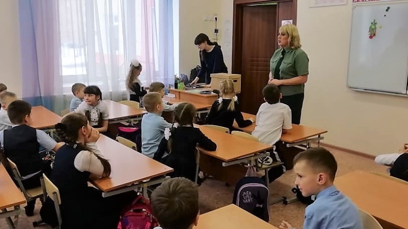 Бүген "Рослесозащита" ФБУ филиалы – Татарстан Республикасы Урманнарын яклау үзәге директоры урынбасары Венера Ефременкова Зеленодольск муниципаль районының 10 нчы "Созвездие" гимназиясенең 1 нче сыйныф укучылары өчен дәрес үткәрде.