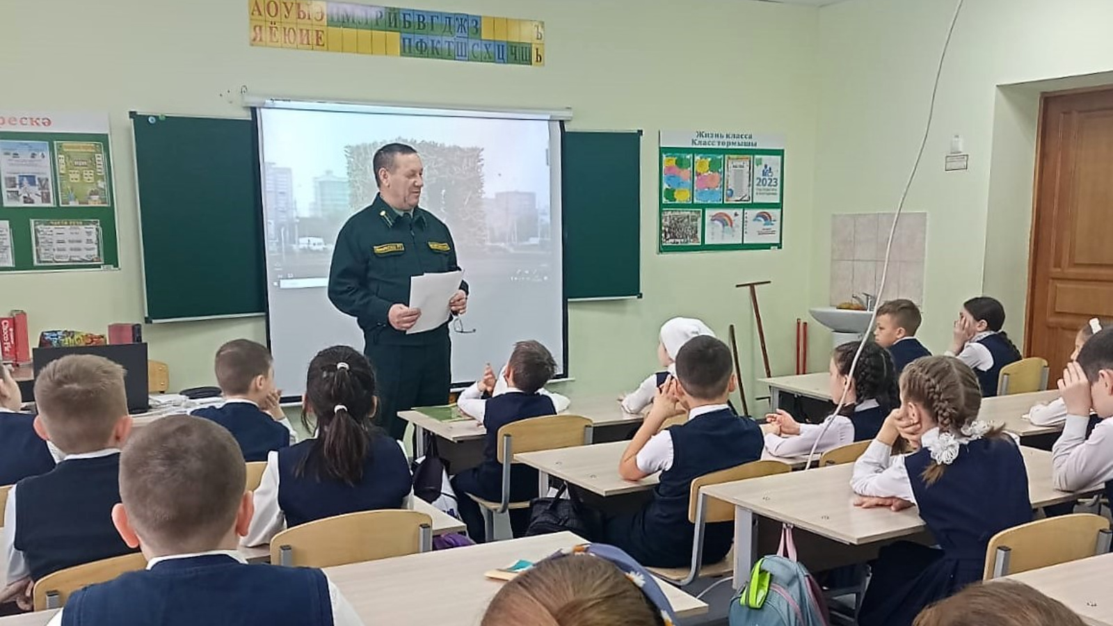Дәрес барышында ул укучыларга урманның үсемлекләр дөньясы, урманчының роле, табигатькә сакчыл карашның мөһимлеге турында сөйләгән.