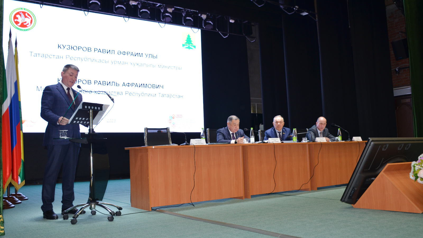 Утырышта докладлар белән ТР урман хуҗалыгы министры Равил Кузюров, Саба муниципаль районы башлыгы Рәис Миңнеханов һ.б. чыгыш ясады.