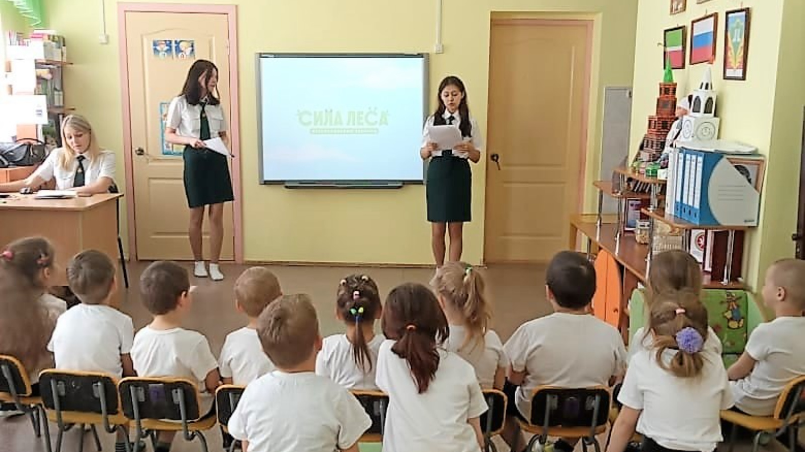 Дәрес барышында студентлар балаларга урманнар, аларның мөһим экологик, икътисадый һәм социаль функцияләре, табигатькә сакчыл мөнәсәбәтнең мөһимлеге турында сөйләгәннәр.